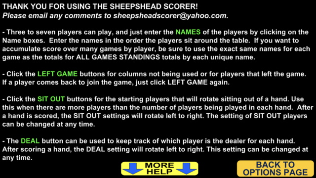 There are points assigned to cards so when you win a trick you also win the points associated with those. Up to seven players can be entered and it can score individual hands of three to seven. In the Sheepshead card game inn all there are 120 points.
